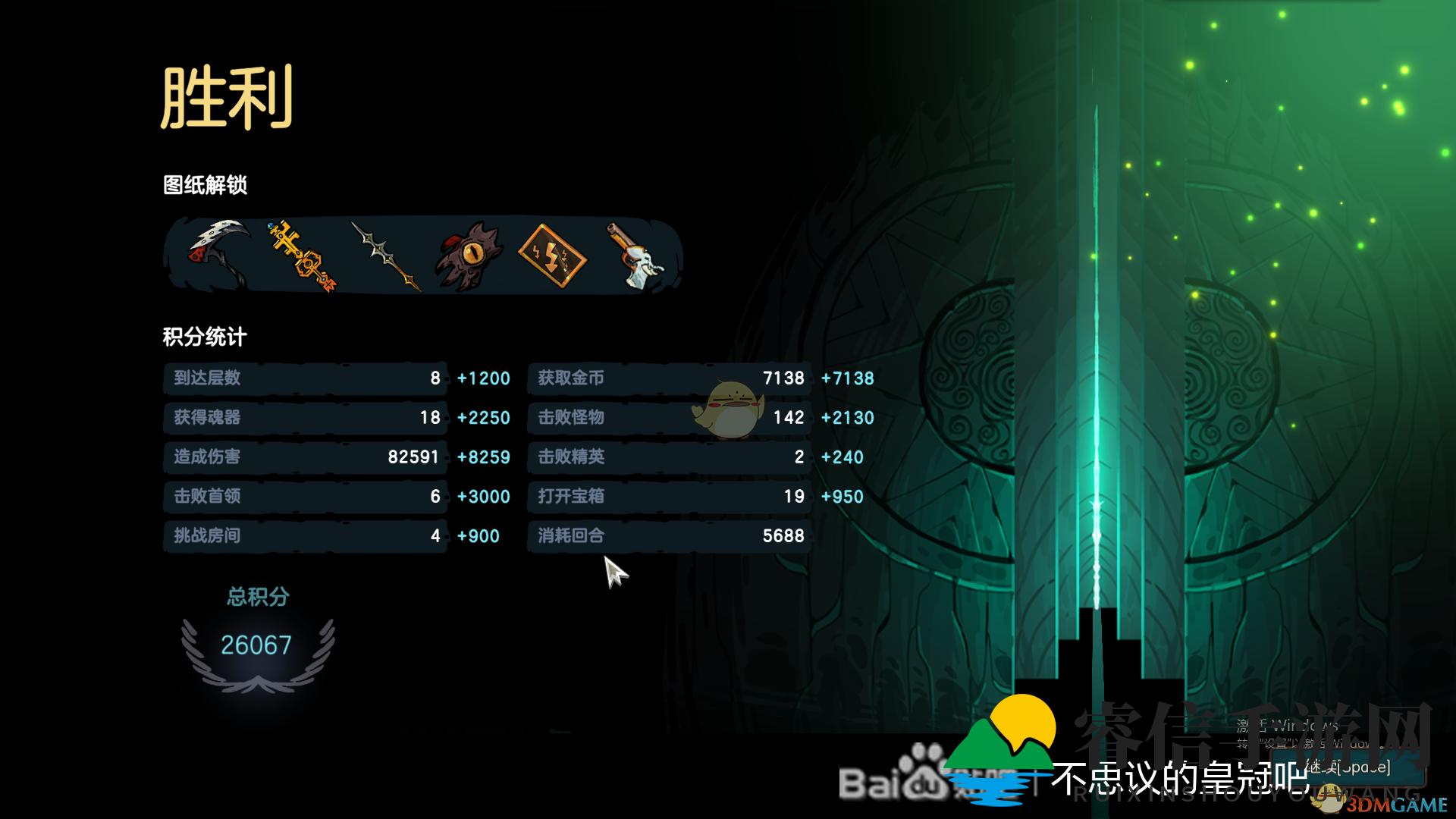 接下来是对决最终boss的时刻,可以看到我在击败它后,依然保持着满血满魔瓶的状态,全程无敌地完成了挑战。