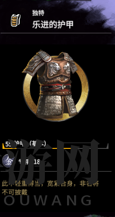 护甲在金将中算是还行的,就是属性加成不行。出门特性还行,鲁莽冒进算是好特性。