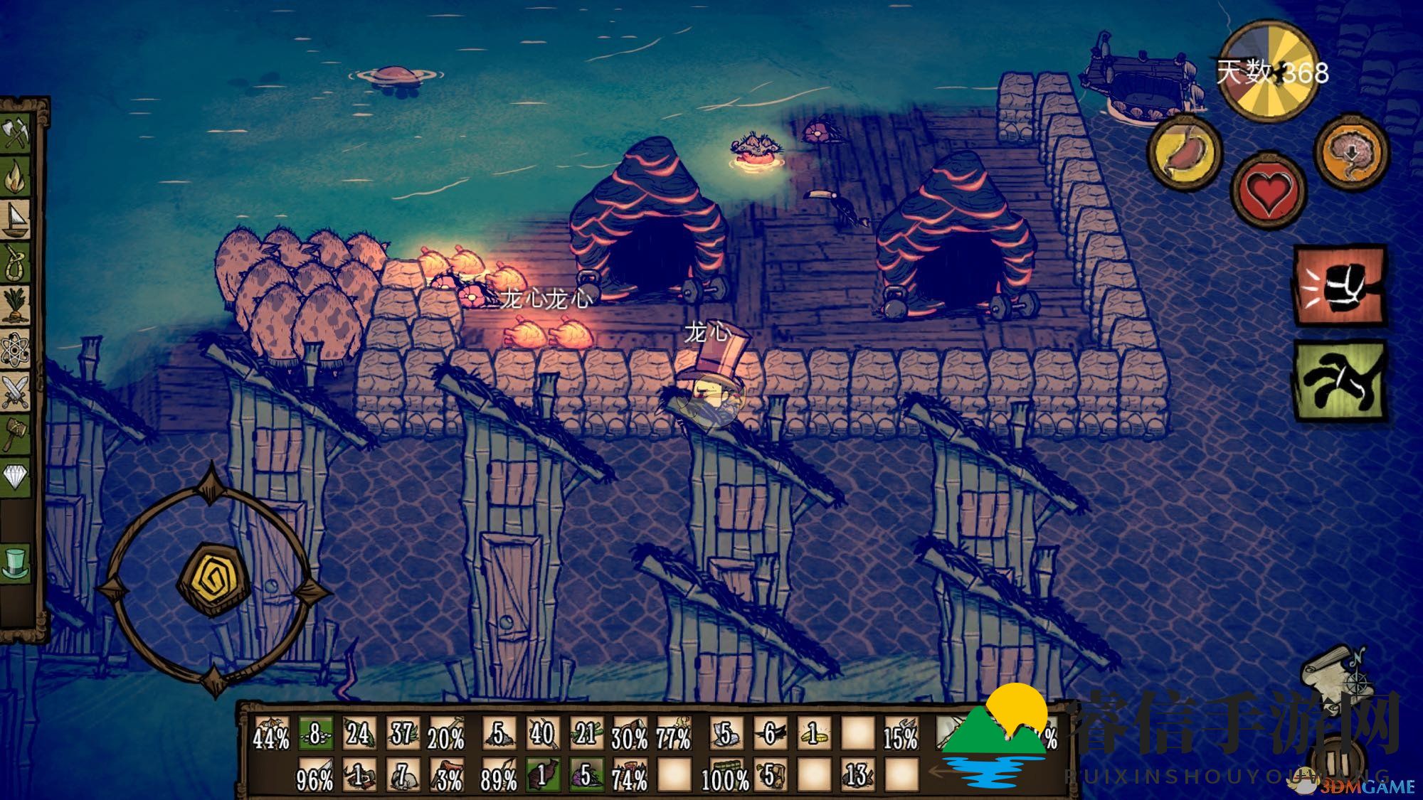 你还可以利用猴子来高效刷取,丰富的肉食让你停不下来。我个人偏爱猪人,而在温蒂的模式下,猴子则是更好的选择,因为我更喜欢和平的生存方式。