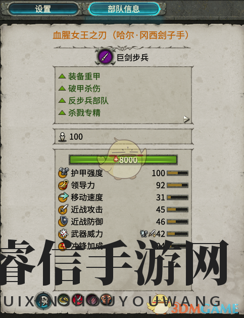 3:割裂:近战,站12打1234,精准72.5/82.5/90,暴击率6%/12%/14%,伤害4-8/5-11/7-15