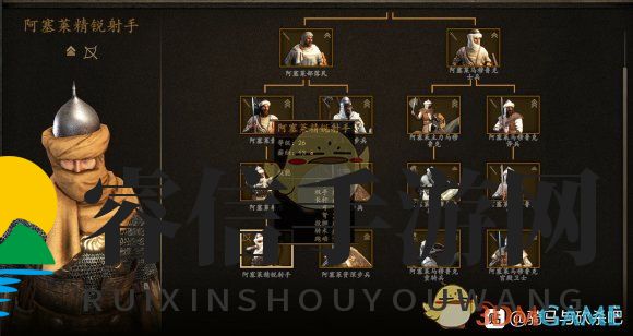 阿塞莱弓箭手虽然护甲削弱,但二阶步兵装备的盾牌大大提升了士兵的生存能力,他们依然是最令人生畏的平民射手。
