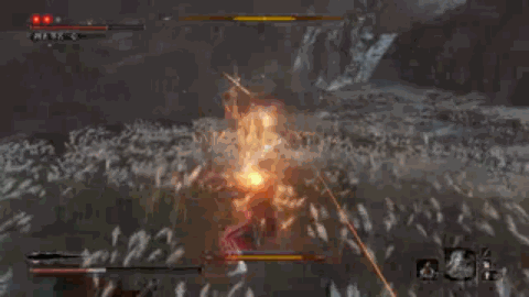 剑术虽然不再占据主导地位,但第一击的剑回击仍是其标志性动作。之后,便进入了枪的狂舞时刻,剑术逐渐变得刚猛无比,霸体刀的使用变得不讲道理,用于强行回击和打断武技,尤其是不死斩的第二下,更是让苇名一心的次元斩难以压制。