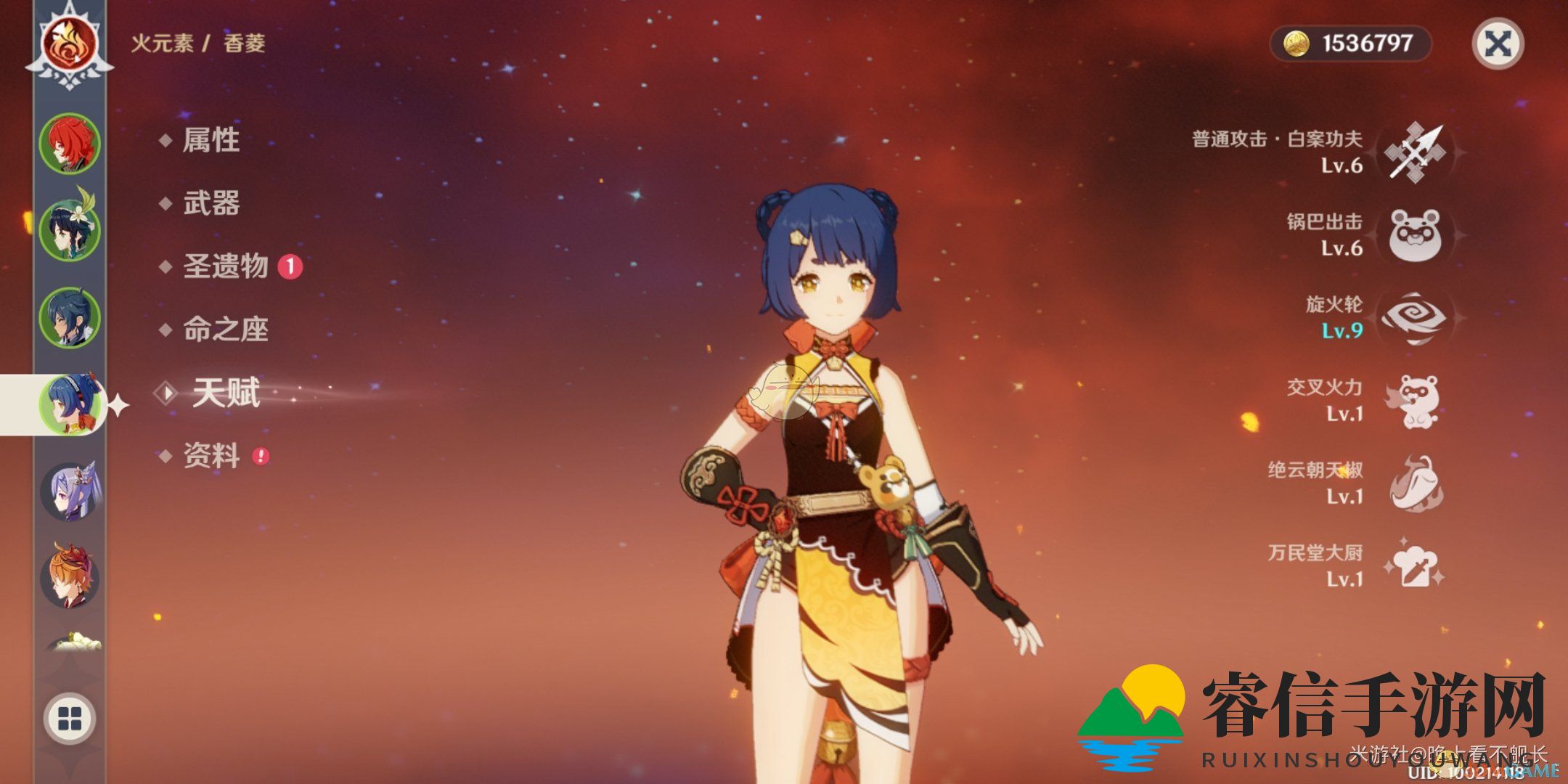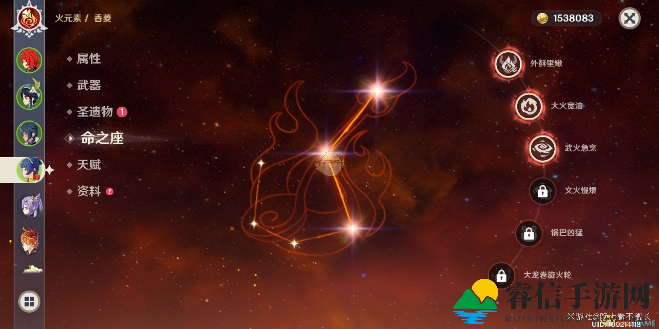 命之座增强了普攻,意味着持续站场成为可能,这种角色我们称之为站场c,也就是主c。香菱的二命可称为主c,因此,技能点满即可,无需犹豫。