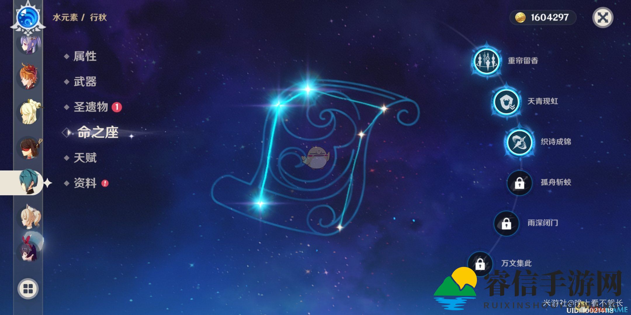 再来看行秋,一命加强e技能,二至三命增强大招,这样一来,你应该知道如何选择了。主点Q技能,副E技能,由于命之座没有增强普攻,平a点不点随你心情。这种没有增强平a,技能可以脱手的,我们称之为副c。